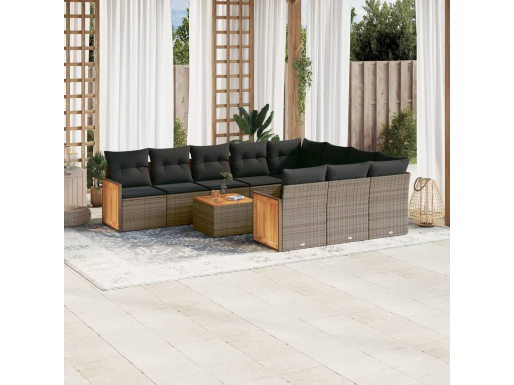 11dílná zahradní sedací souprava s poduškami šedá polyratan 3228027
