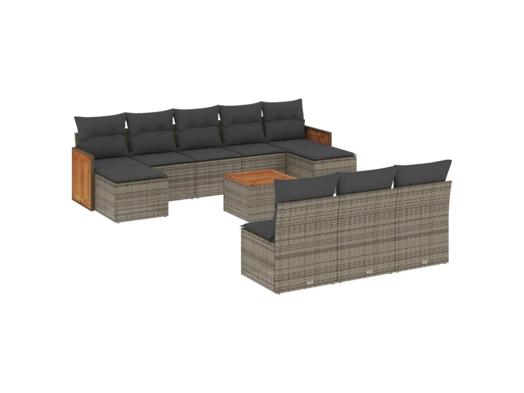 11dílná zahradní sedací souprava s poduškami šedá polyratan 3228076