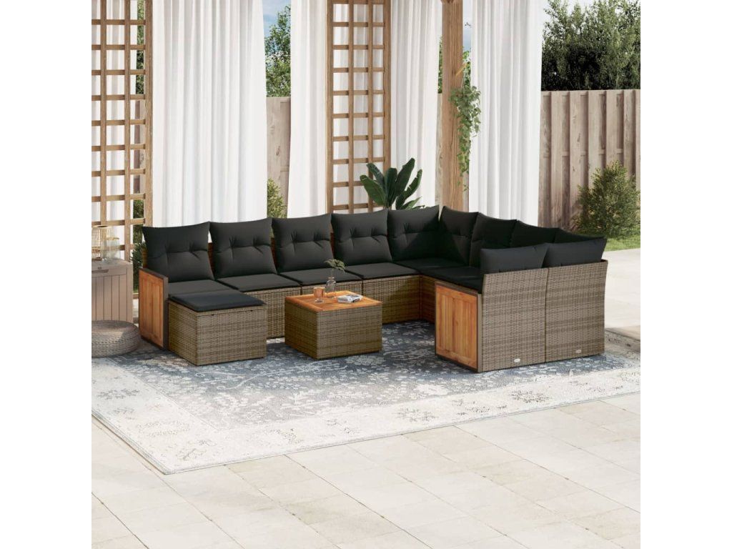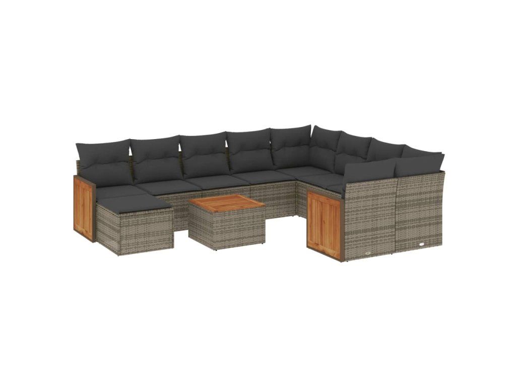 11dílná zahradní sedací souprava s poduškami šedá polyratan 3228244