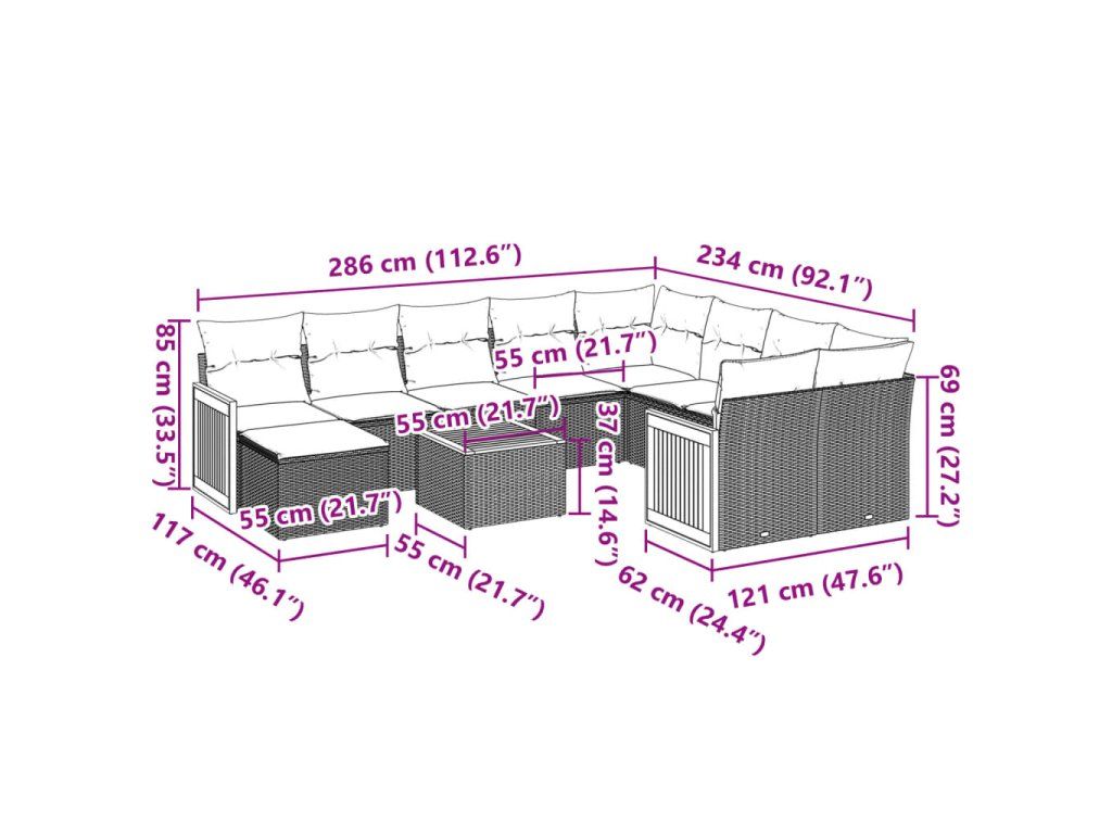 Tato zahradní sedací souprava je dokonalým doplňkem vaší zahrady, terasy nebo dvorku a poskytne vám pohodlné a příjemné místo, kde si můžete povídat s rodinou a přáteli nebo jen tak odpočívat a užívat si pobyt venku.