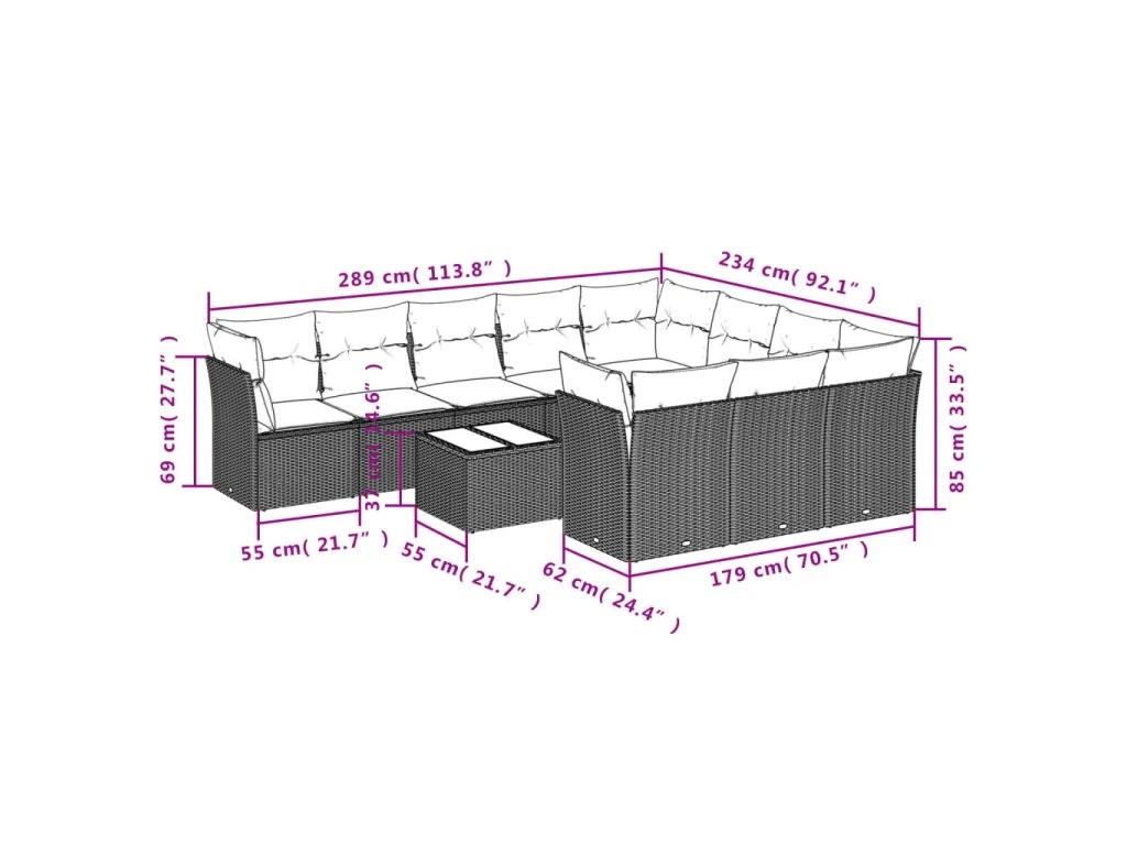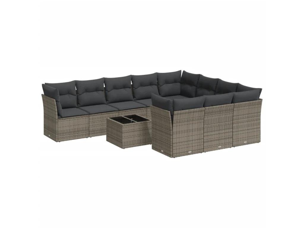 11dílná zahradní sedací souprava s poduškami šedá polyratan 3250069