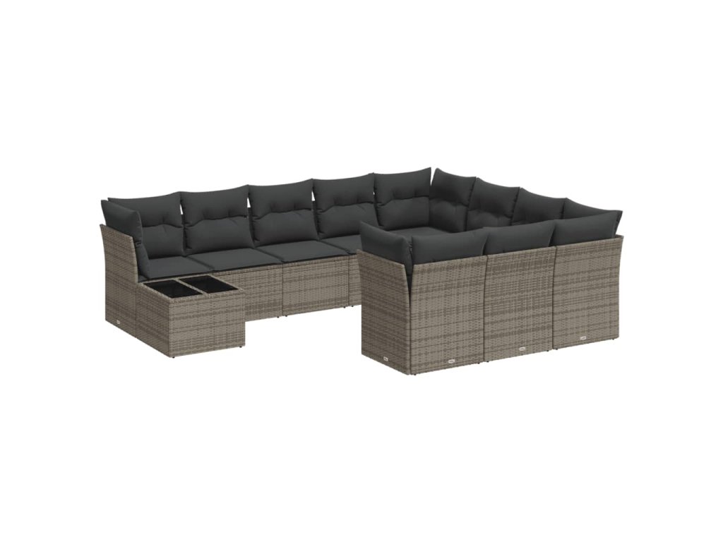 11dílná zahradní sedací souprava s poduškami šedá polyratan 3250099