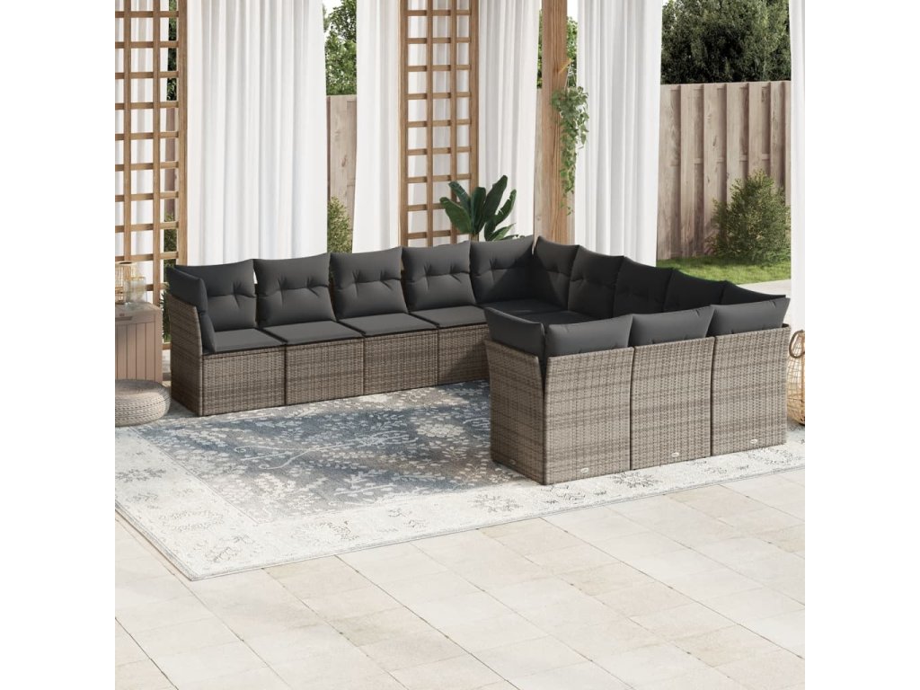 11dílná zahradní sedací souprava s poduškami šedá polyratan 3250249