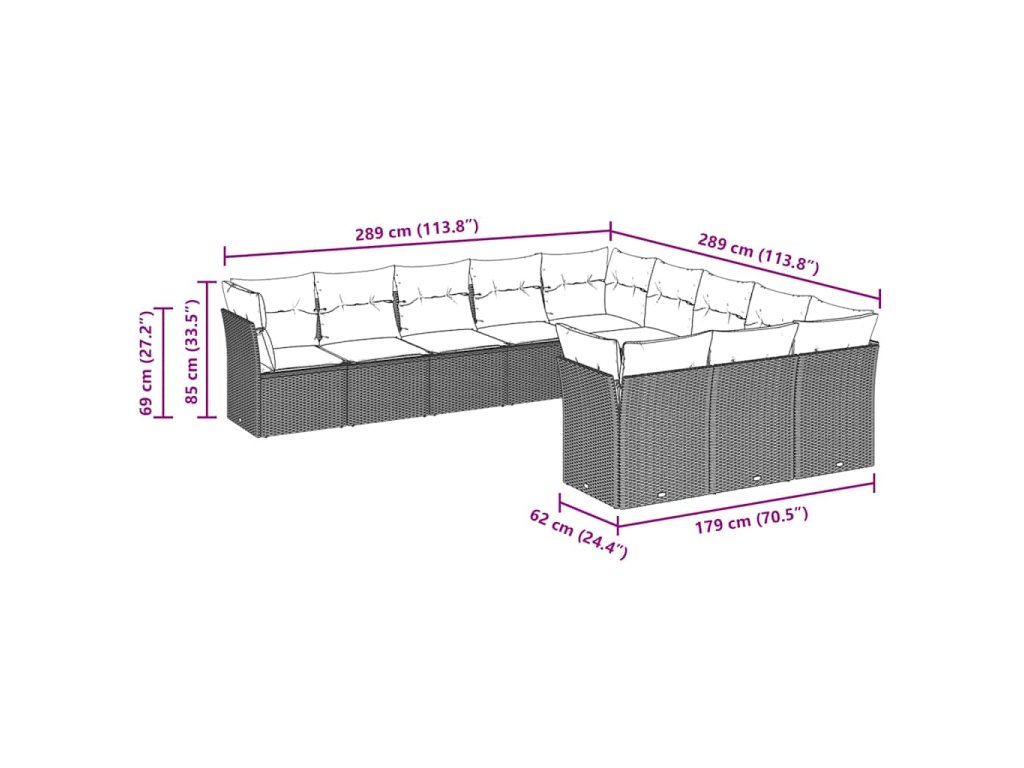11dílná zahradní sedací souprava s poduškami šedá polyratan 3250251