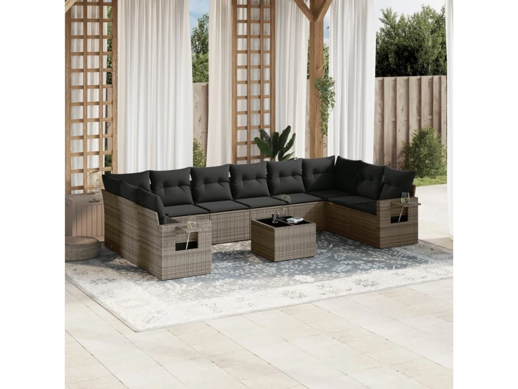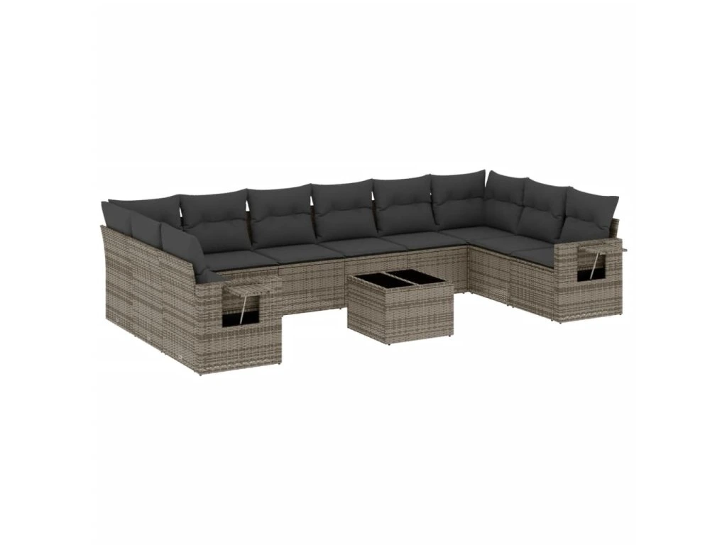 11dílná zahradní sedací souprava s poduškami šedá polyratan 3253017