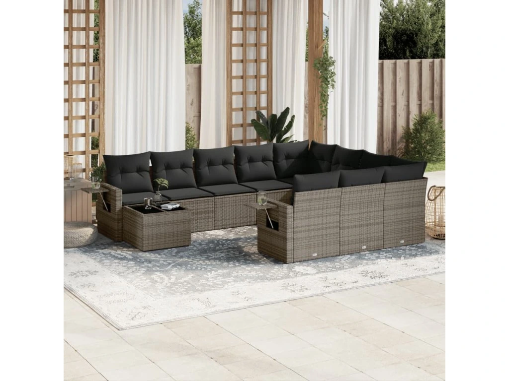 11dílná zahradní sedací souprava s poduškami šedá polyratan 3253067