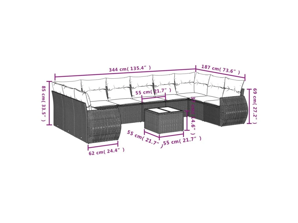 Tato zahradní sedací souprava je dokonalým doplňkem vaší zahrady, terasy nebo dvorku a poskytne vám pohodlné a příjemné místo, kde si můžete povídat s rodinou a přáteli nebo jen tak odpočívat a užívat si pobyt venku.