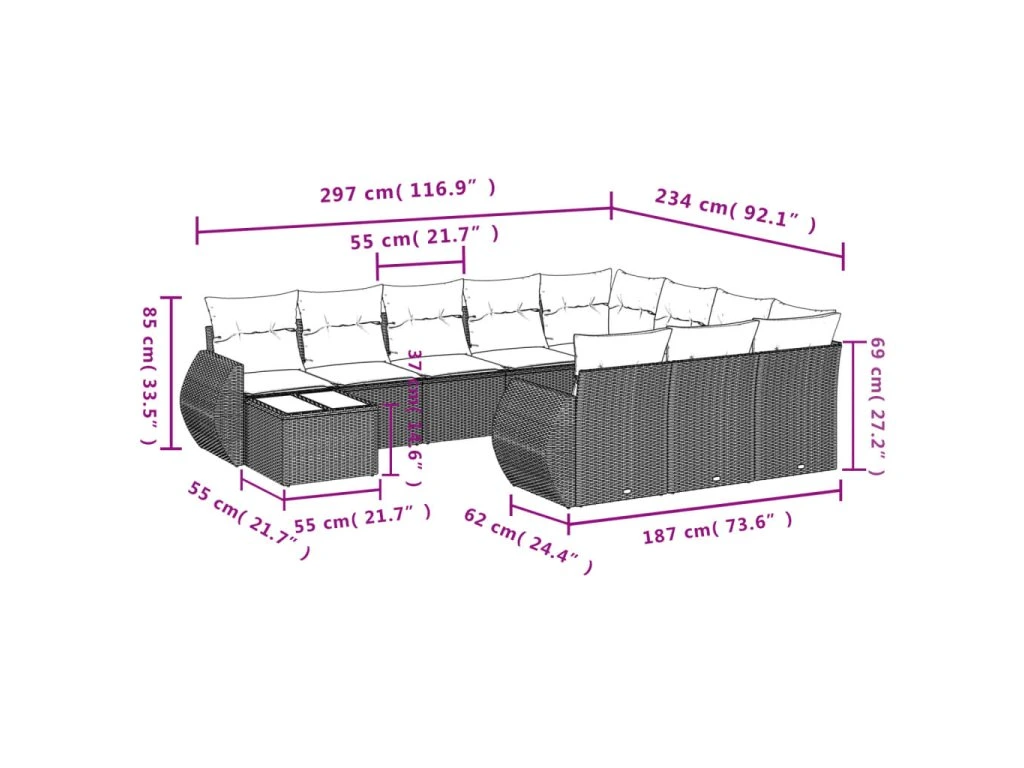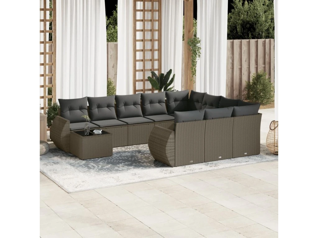 11dílná zahradní sedací souprava s poduškami šedá polyratan 3254269