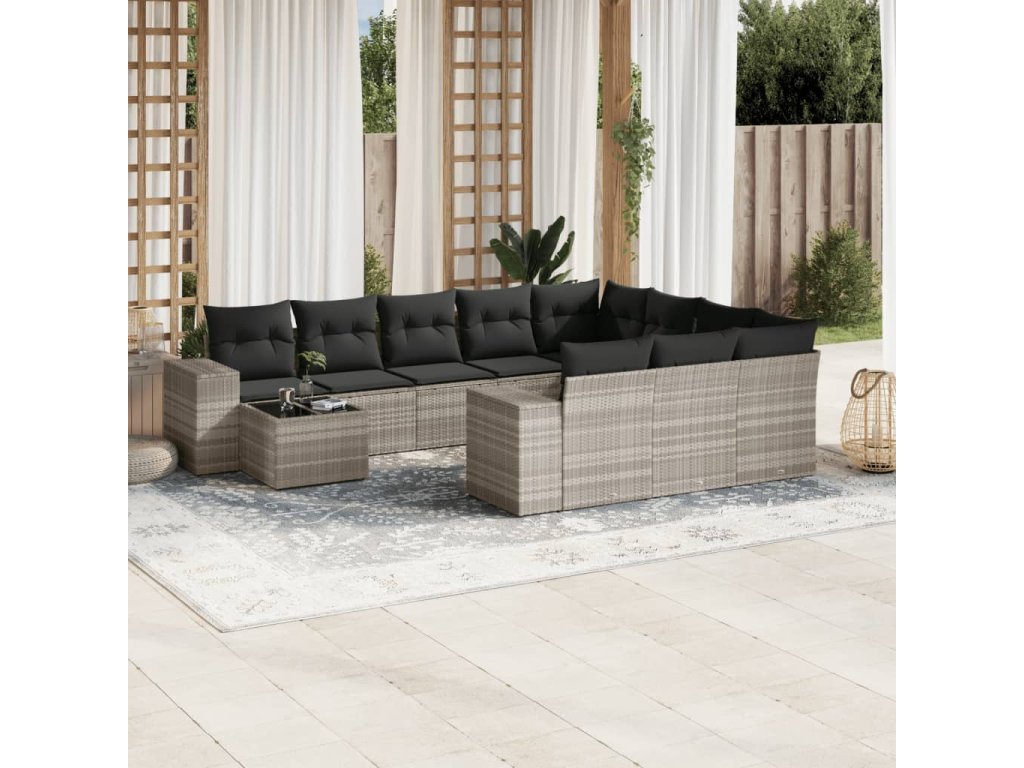 11dílná zahradní sedací souprava s poduškami šedá polyratan 3255469
