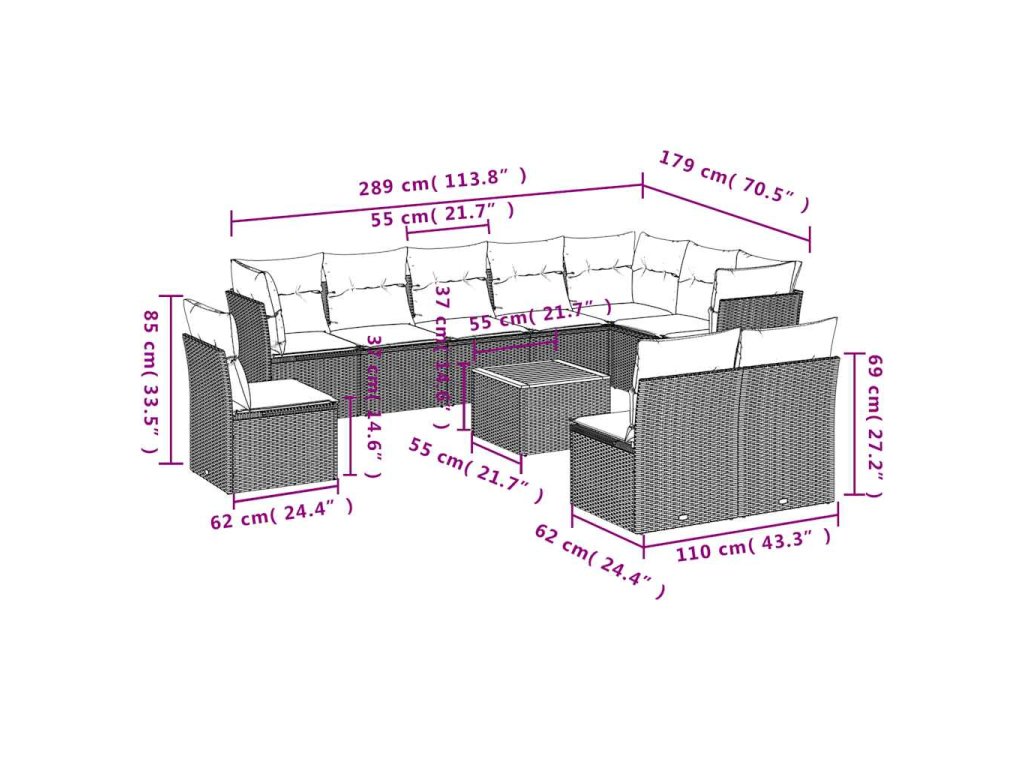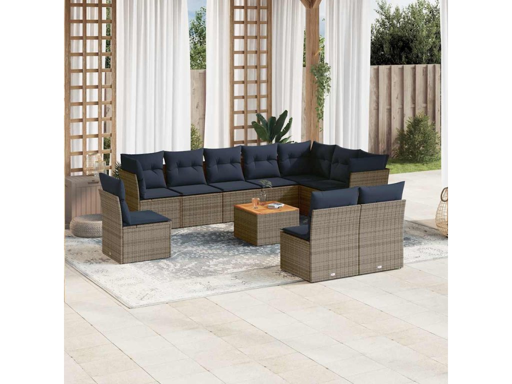 11dílná zahradní sedací souprava s poduškami šedá polyratan 3256033