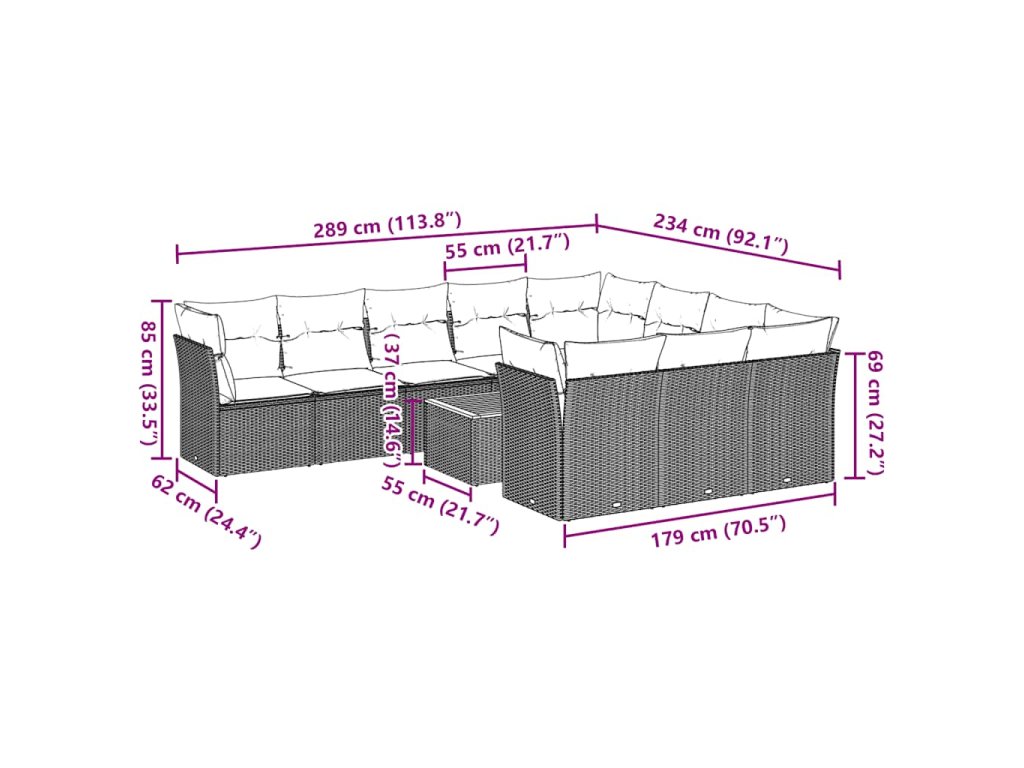 11dílná zahradní sedací souprava s poduškami šedá polyratan 3256173