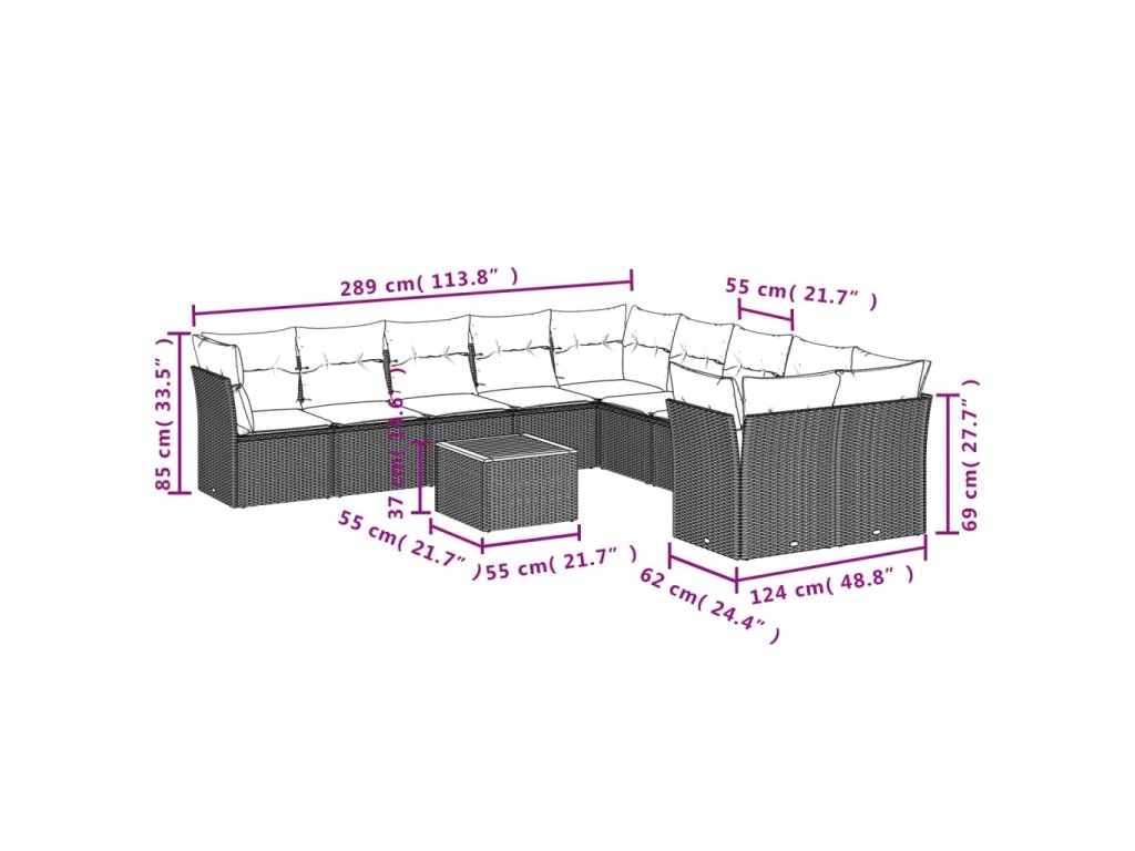 11dílná zahradní sedací souprava s poduškami šedá polyratan 3256186