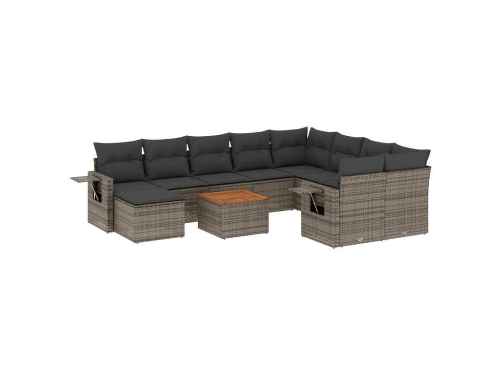 11dílná zahradní sedací souprava s poduškami šedá polyratan 3257187