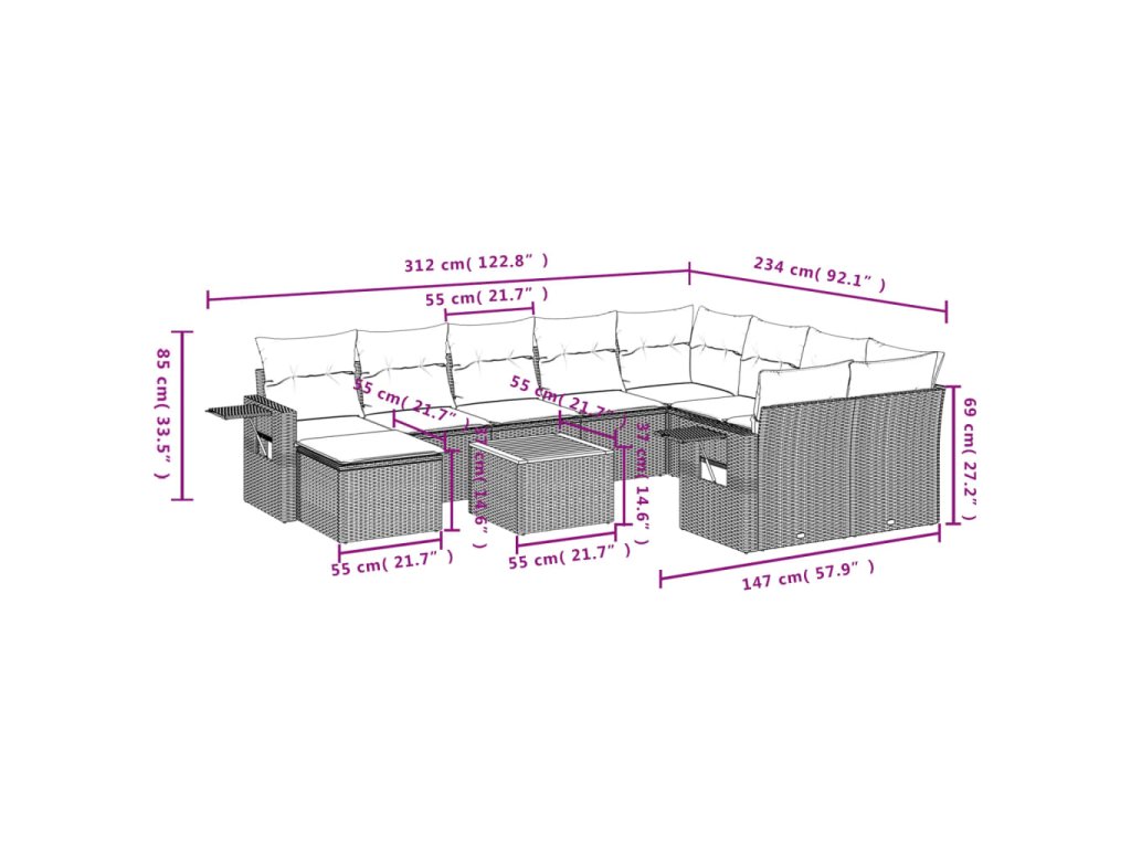 Tato zahradní sedací souprava je dokonalým doplňkem vaší zahrady, terasy nebo dvorku a poskytne vám pohodlné a příjemné místo, kde si můžete povídat s rodinou a přáteli nebo jen tak odpočívat a užívat si pobyt venku.