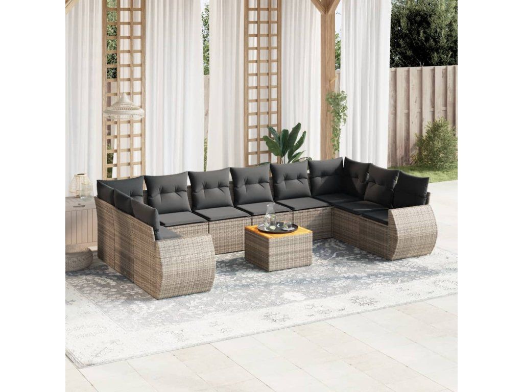 11dílná zahradní sedací souprava s poduškami šedá polyratan 3257509