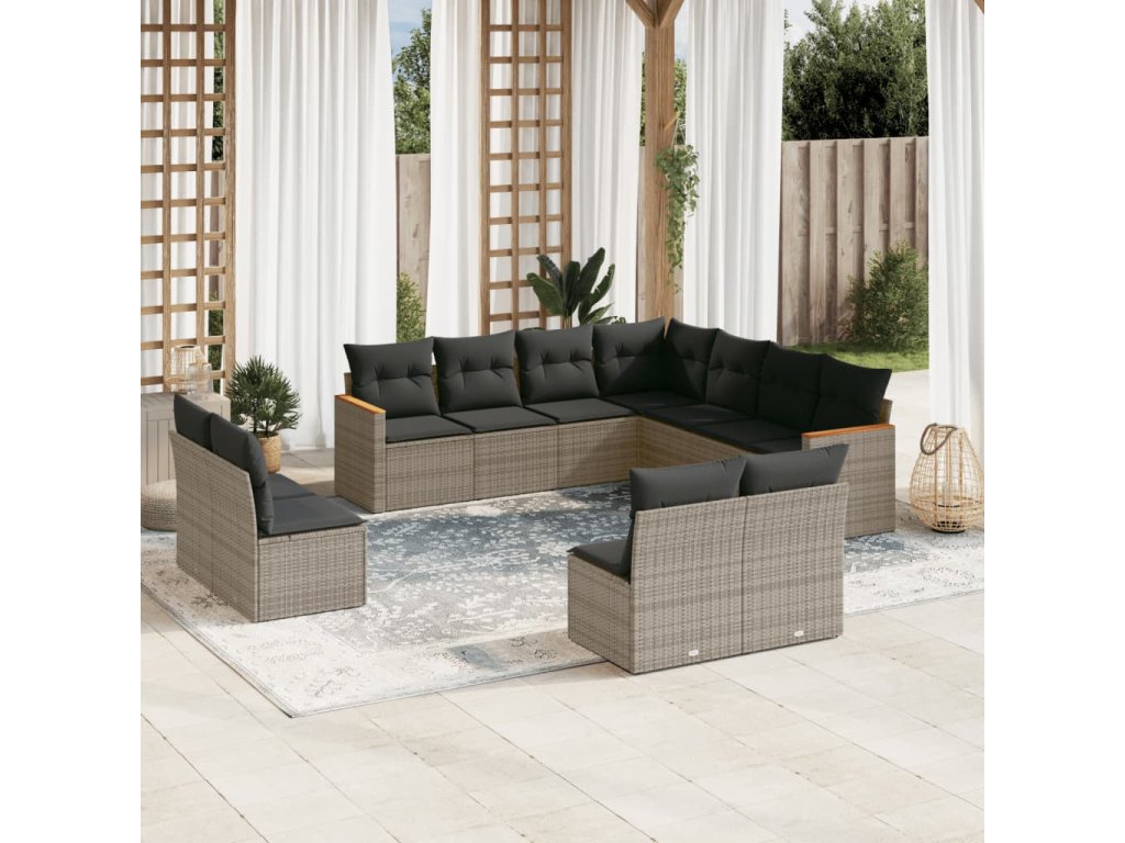 11dílná zahradní sedací souprava s poduškami šedá polyratan 3258490