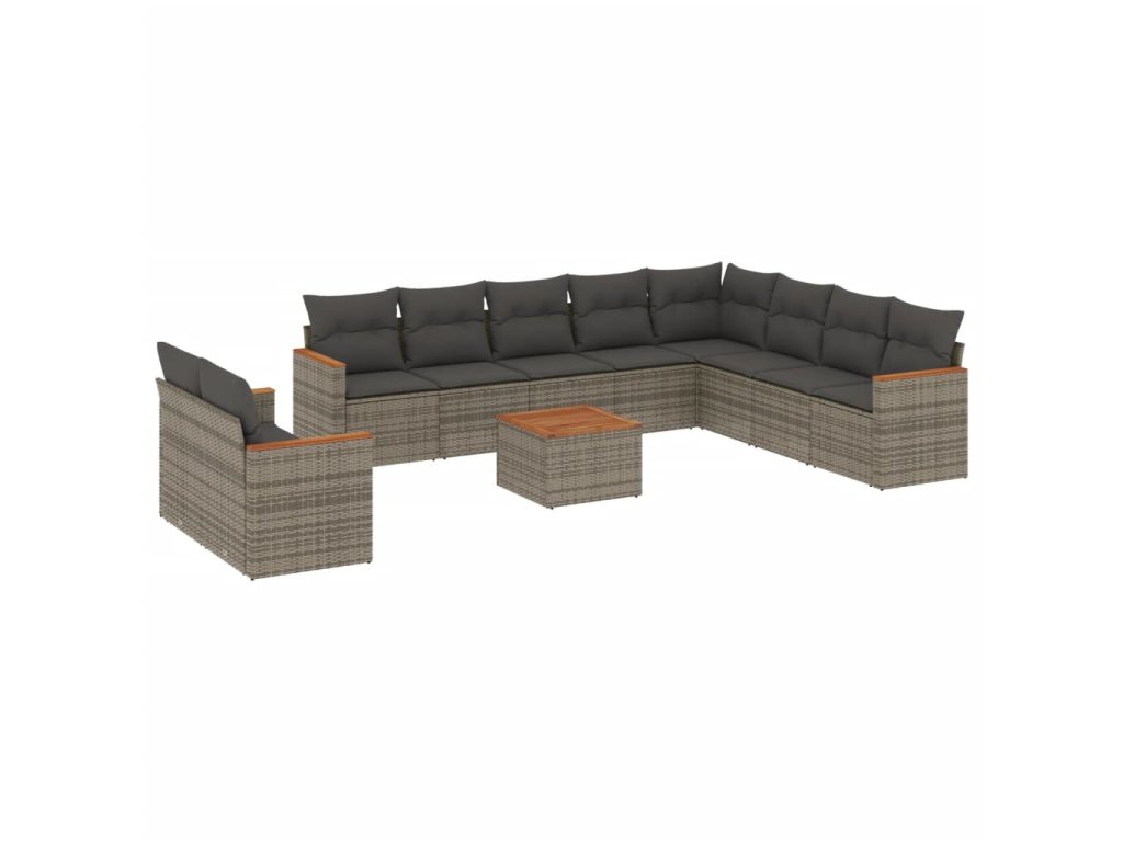 11dílná zahradní sedací souprava s poduškami šedá polyratan 3258525