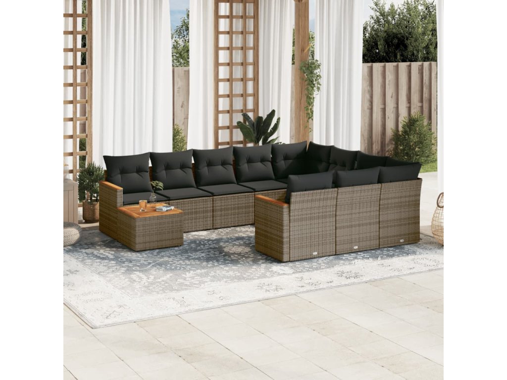 11dílná zahradní sedací souprava s poduškami šedá polyratan 3258770