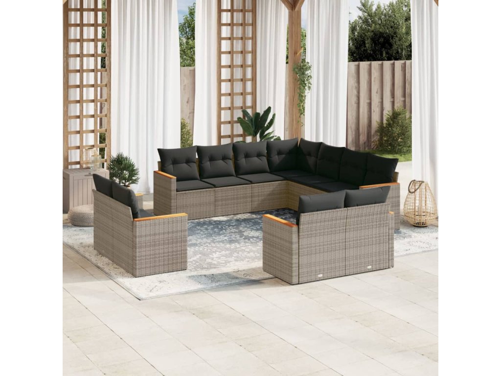 11dílná zahradní sedací souprava s poduškami šedá polyratan 3258903