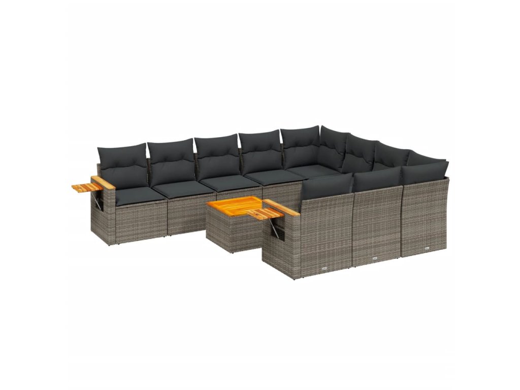 11dílná zahradní sedací souprava s poduškami šedá polyratan 3259589