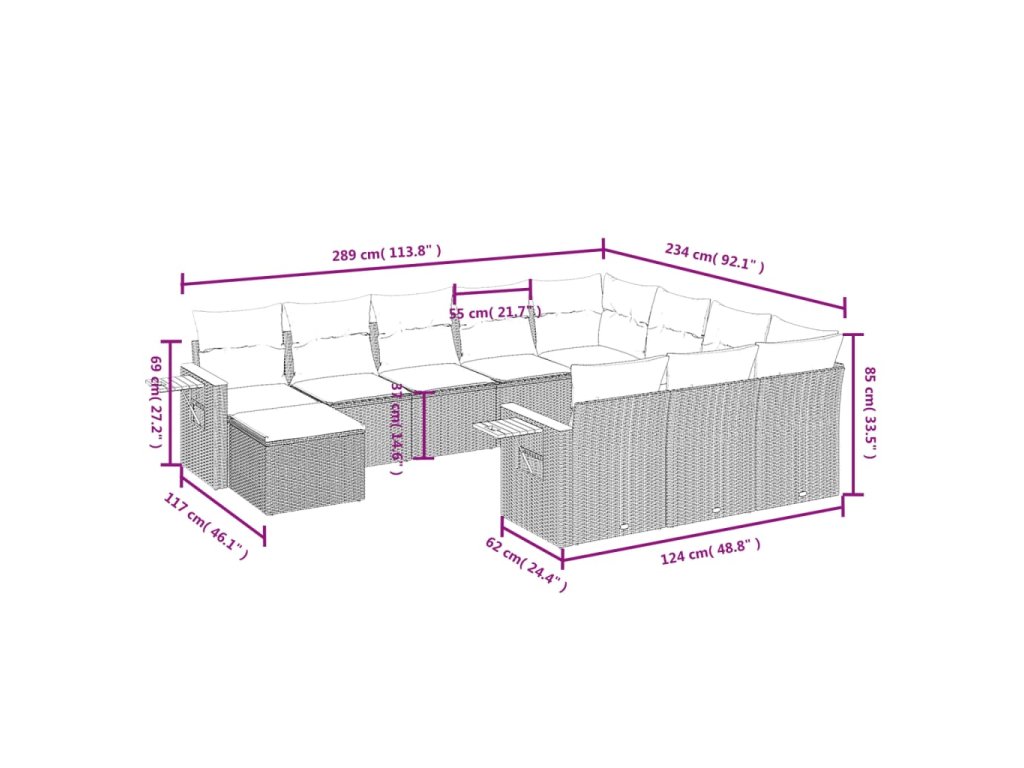 11dílná zahradní sedací souprava s poduškami šedá polyratan 3259610