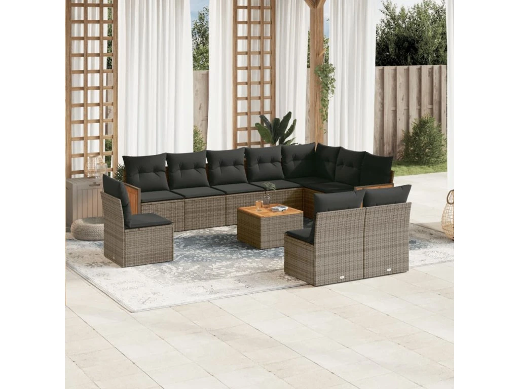 11dílná zahradní sedací souprava s poduškami šedá polyratan 3260163