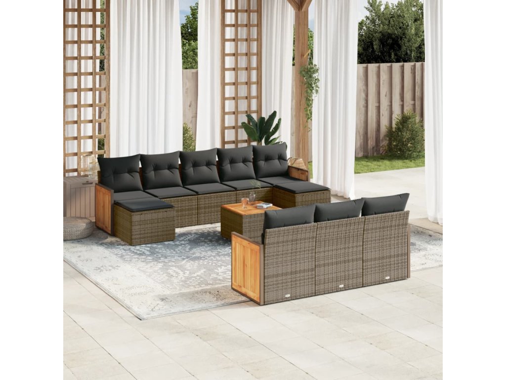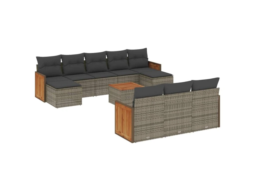 11dílná zahradní sedací souprava s poduškami šedá polyratan 3260506