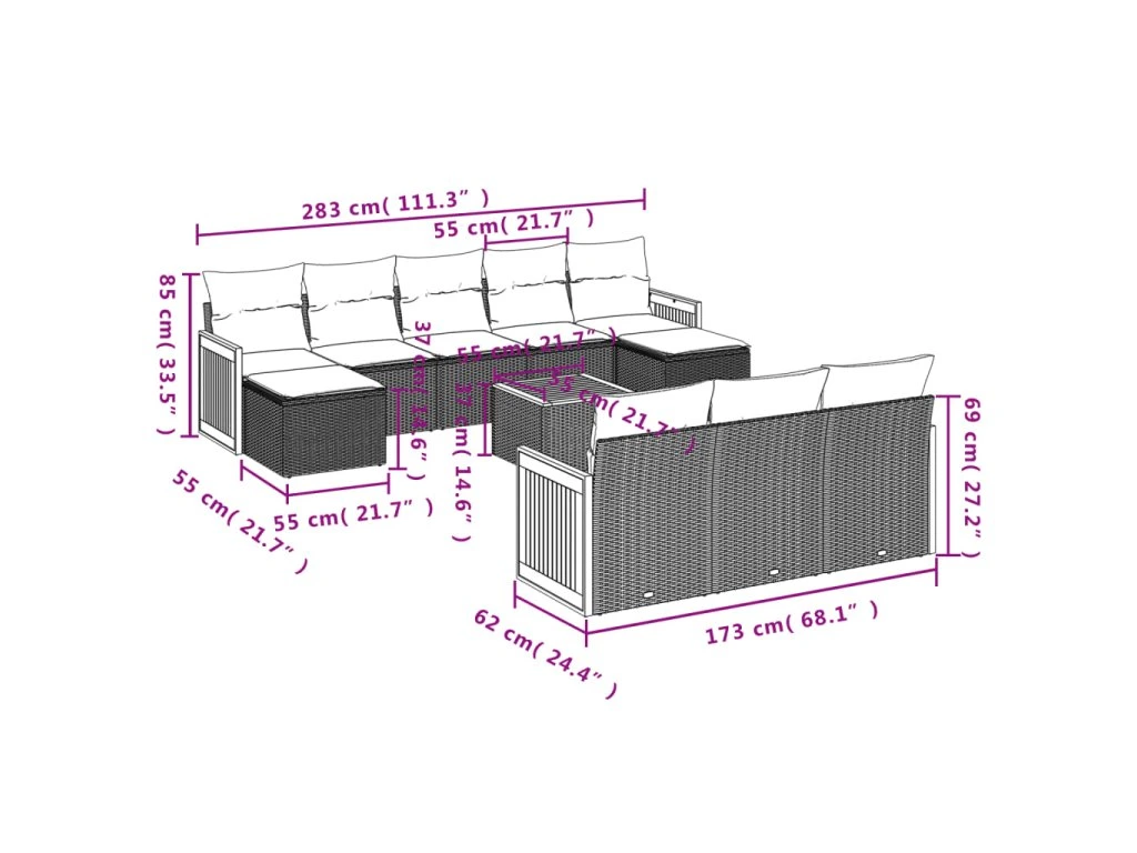 - Modulární design: Tato sada venkovního nábytku se vyznačuje modulární konstrukcí, je tedy zcela flexibilní a lze ji snadno přemisťovat, takže si můžete uspořádat venkovní nábytek dle vašich potřeb.