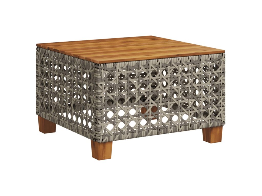 - Materiál: PE ratan, práškově lakovaná ocel, masivní akáciové dřevo s přírodní olejovou povrchovou úpravou