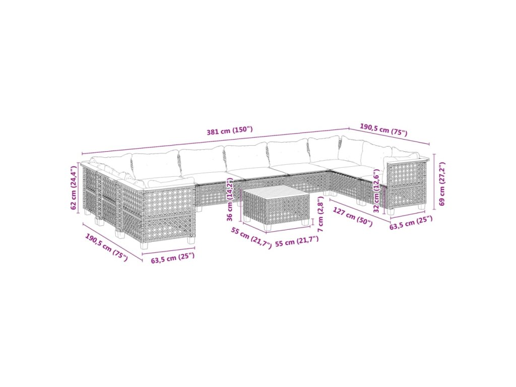 11dílná zahradní sedací souprava s poduškami šedá polyratan 3262029