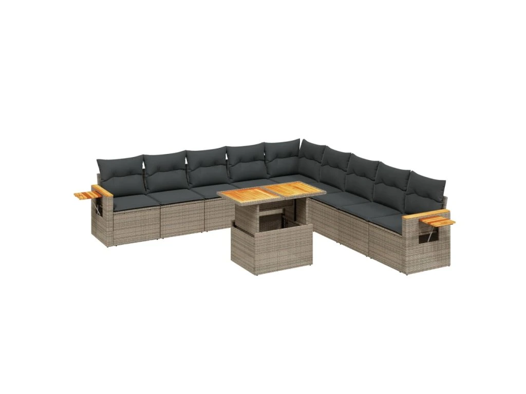 11dílná zahradní sedací souprava s poduškami šedá polyratan 3273706