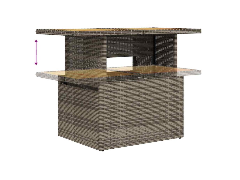 - Materiál: PE ratan, práškově lakovaná ocel, masivní akáciové dřevo s olejovou povrchovou úpravou