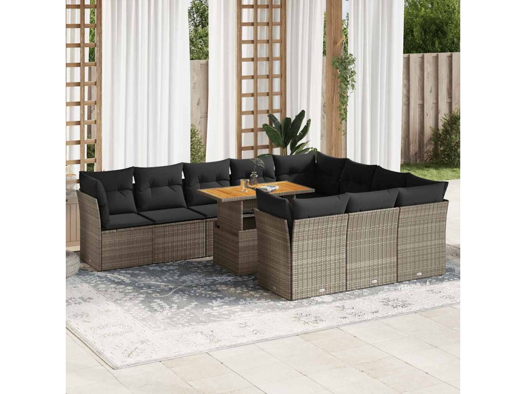 11dílná zahradní sedací souprava s poduškami šedá polyratan 3326979