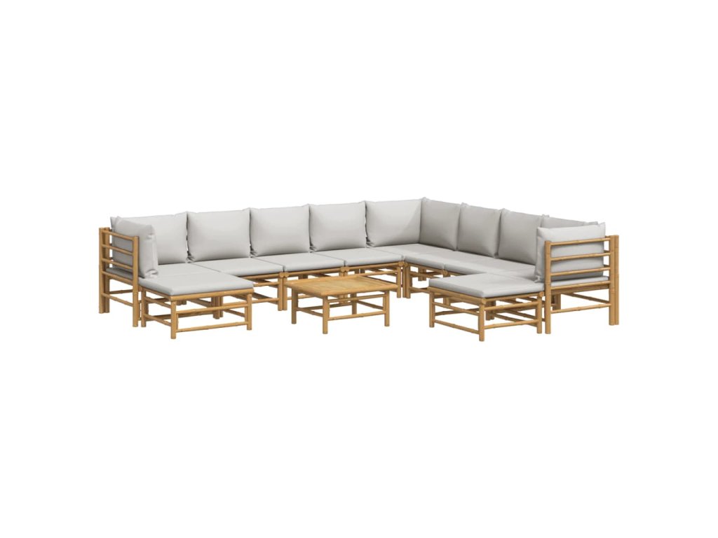 11dílná zahradní sedací souprava světle šedé podušky bambus 3155097