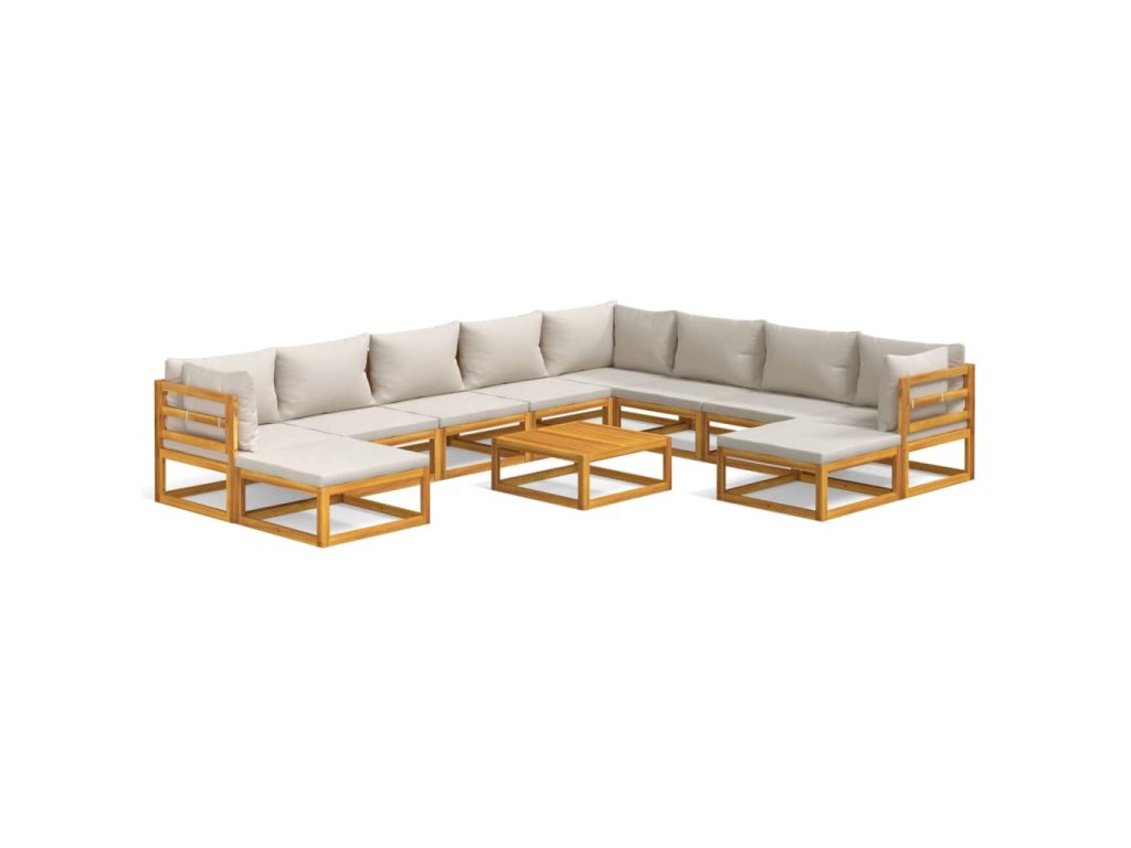 11dílná zahradní sedací souprava světle šedé podušky masiv 3155293