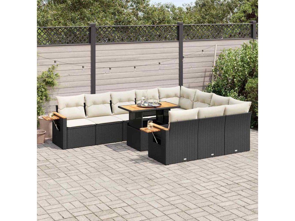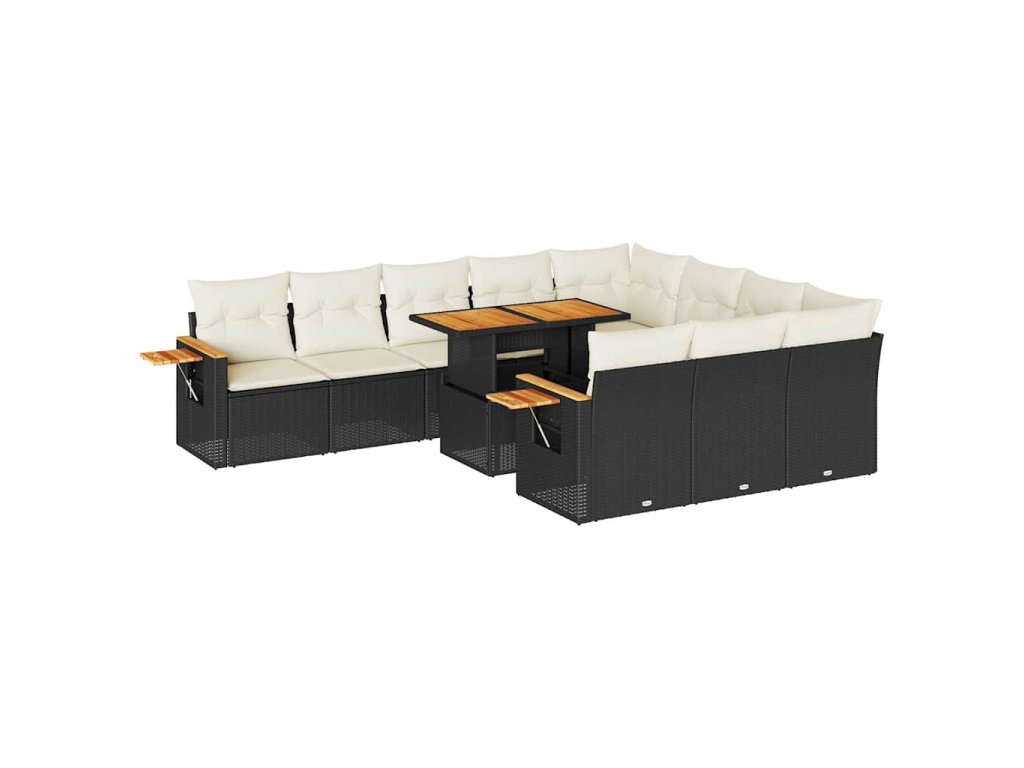 11dílná zahradní sestava s poduškami černá polyratan akácie 3327647