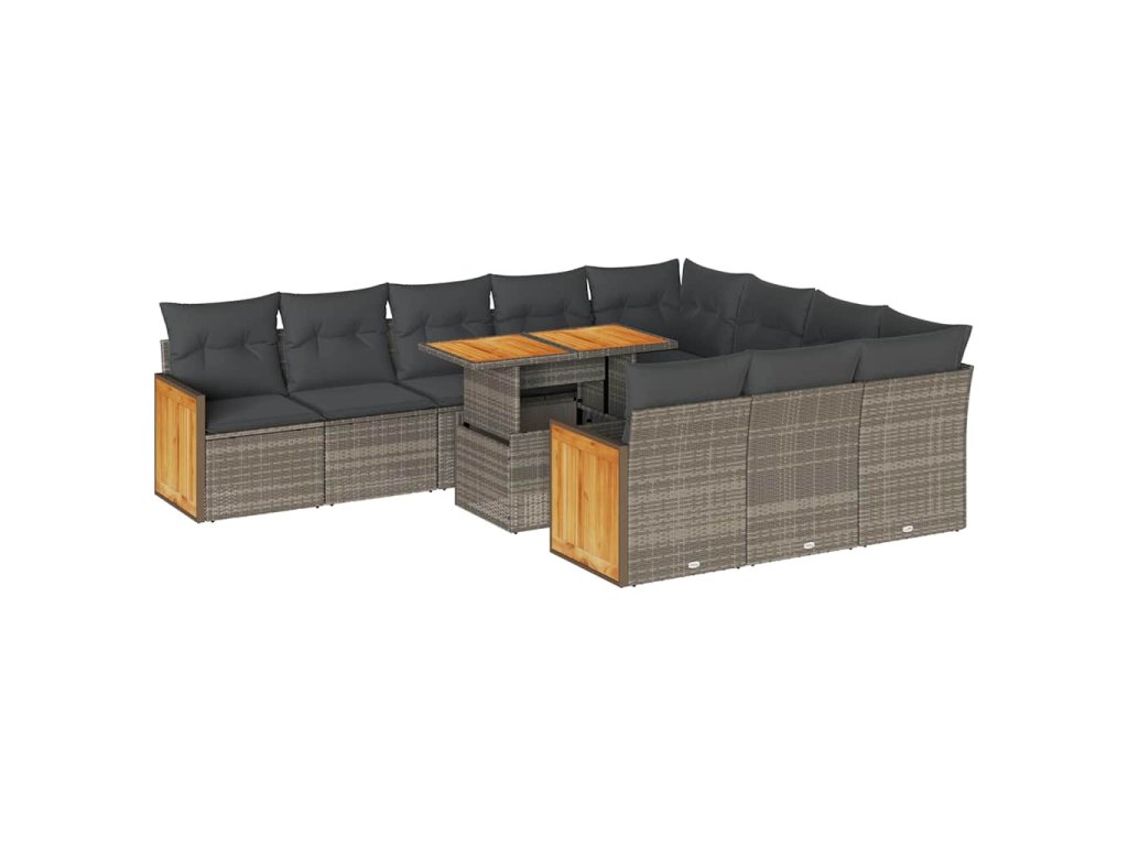 11dílná zahradní sestava s poduškami šedá polyratan akácie 3327763