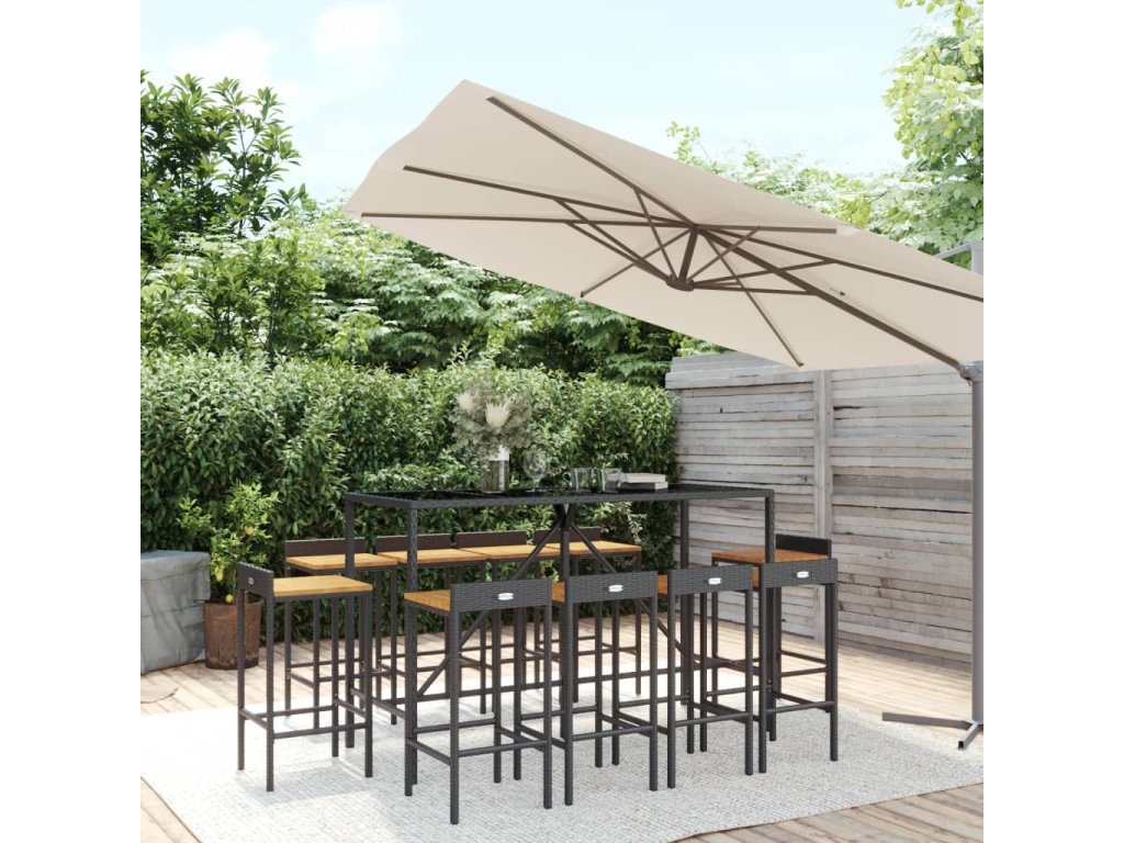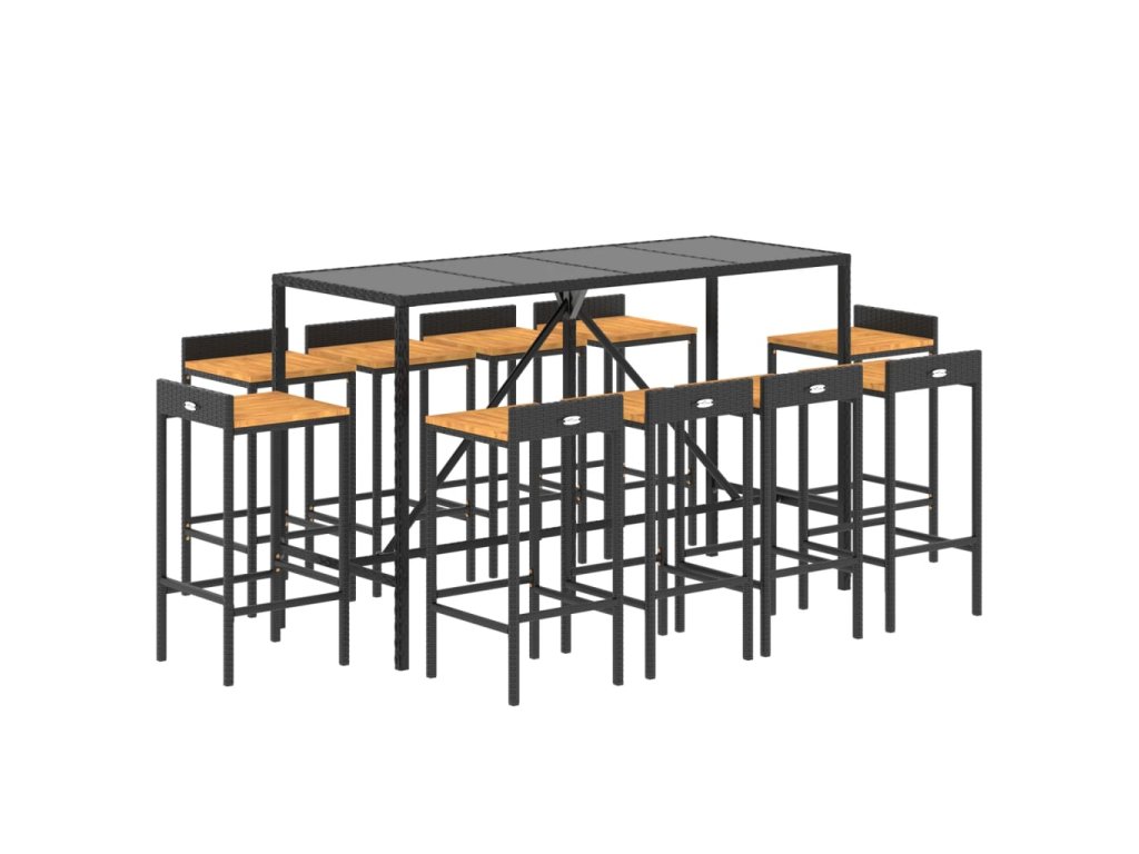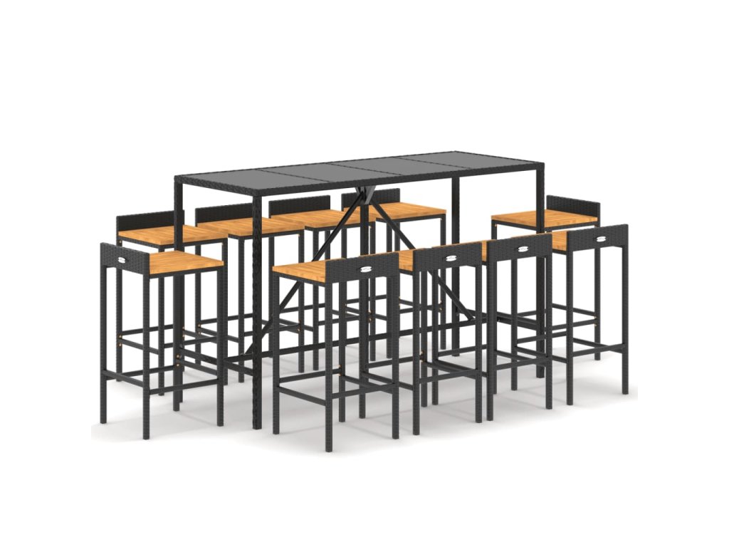 11dílný zahradní barový set černý polyratan a masivní akácie 3187682
