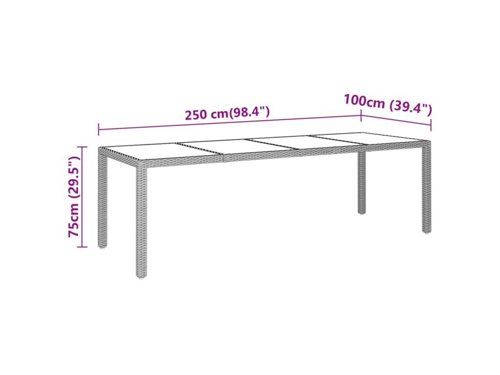 - Rozměry: 250 x 100 x 75 cm (D x Š x V)