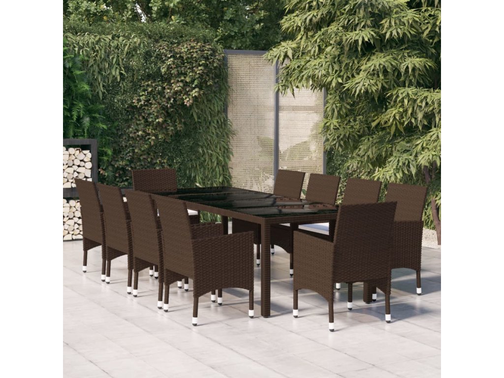 11dílný zahradní jídelní set polyratan hnědý 3095929