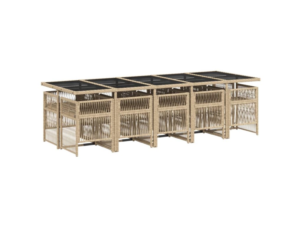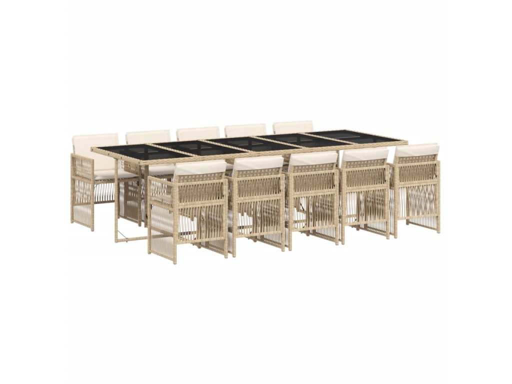 11dílný zahradní jídelní set s poduškami béžový polyratan 3210934