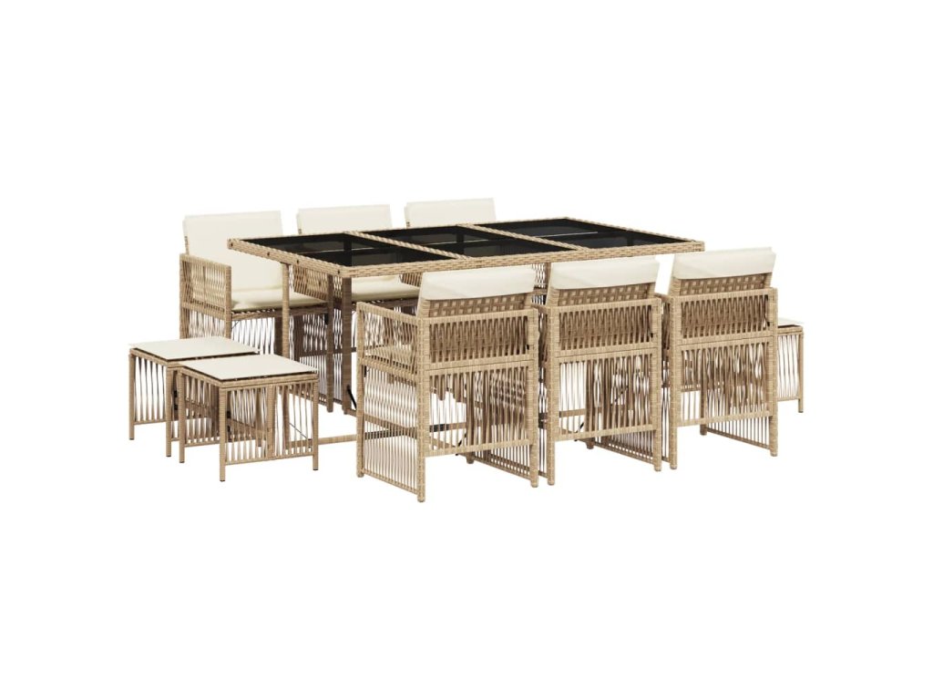 11dílný zahradní jídelní set s poduškami béžový polyratan 3210970
