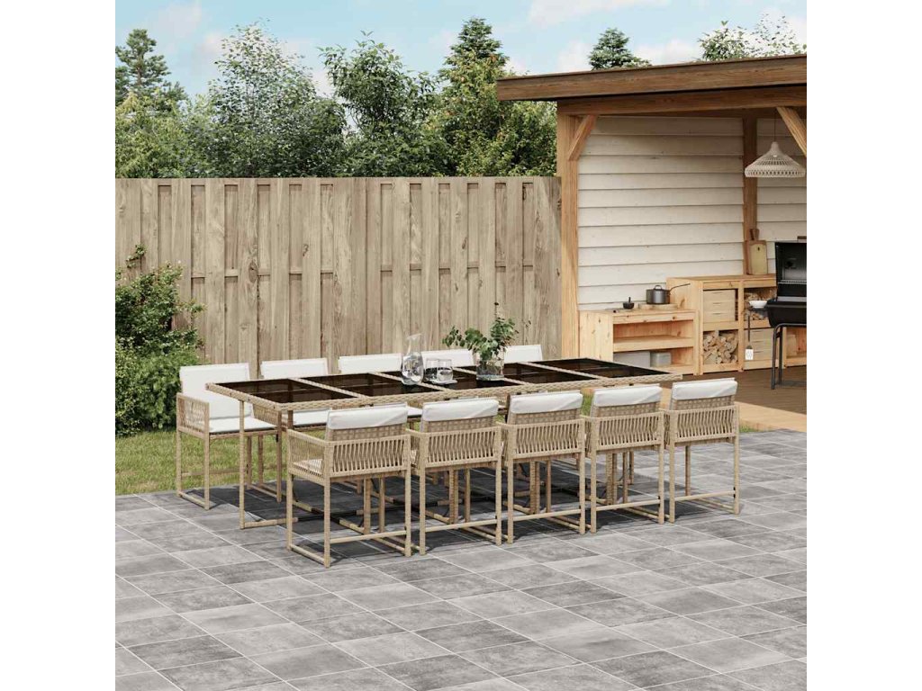 11dílný zahradní jídelní set s poduškami béžový polyratan 3211474