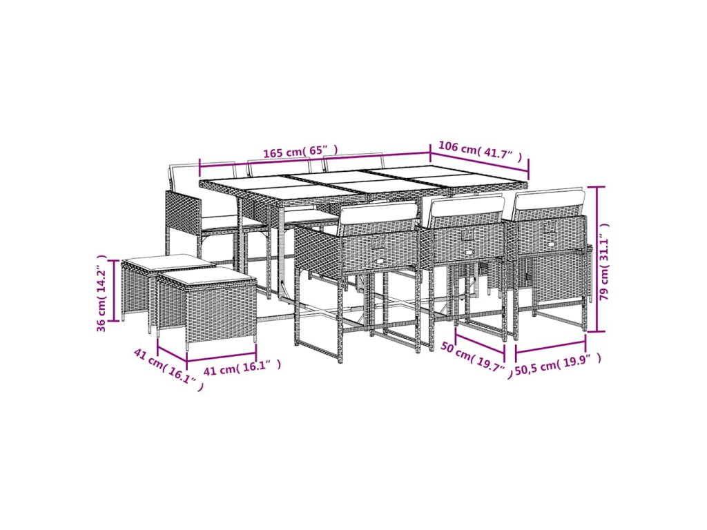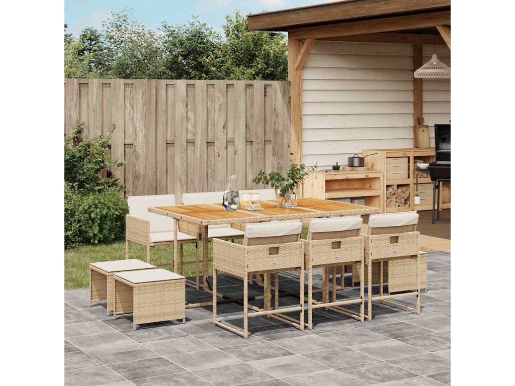 11dílný zahradní jídelní set s poduškami béžový polyratan 3278103
