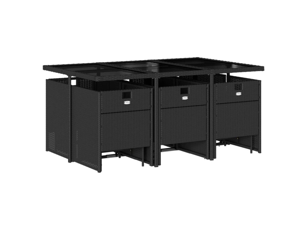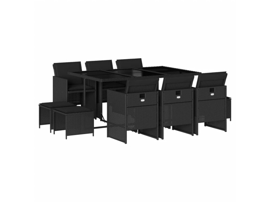 11dílný zahradní jídelní set s poduškami černý polyratan 3210607
