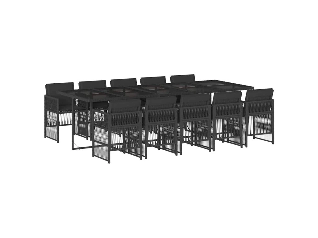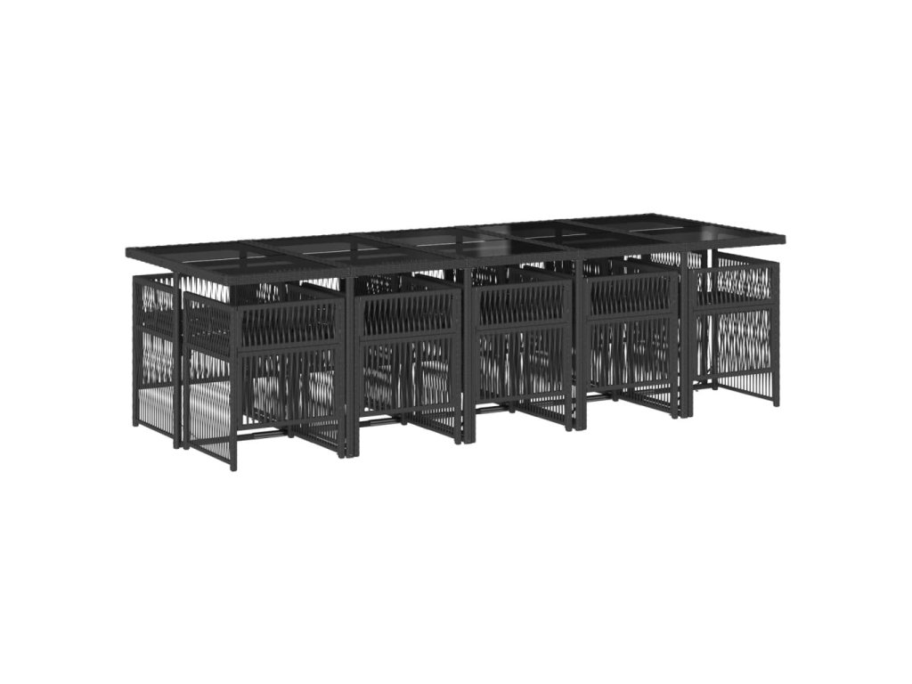 11dílný zahradní jídelní set s poduškami černý polyratan 3210931
