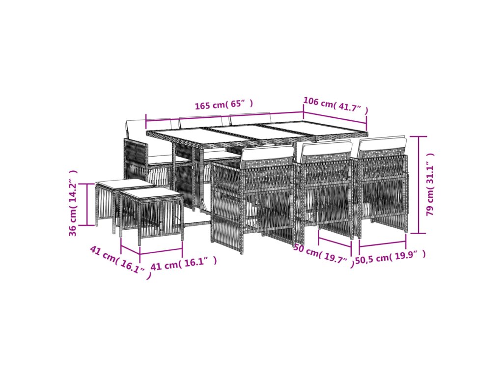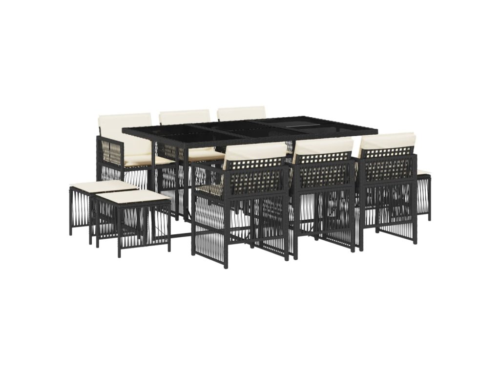 11dílný zahradní jídelní set s poduškami černý polyratan 3210966
