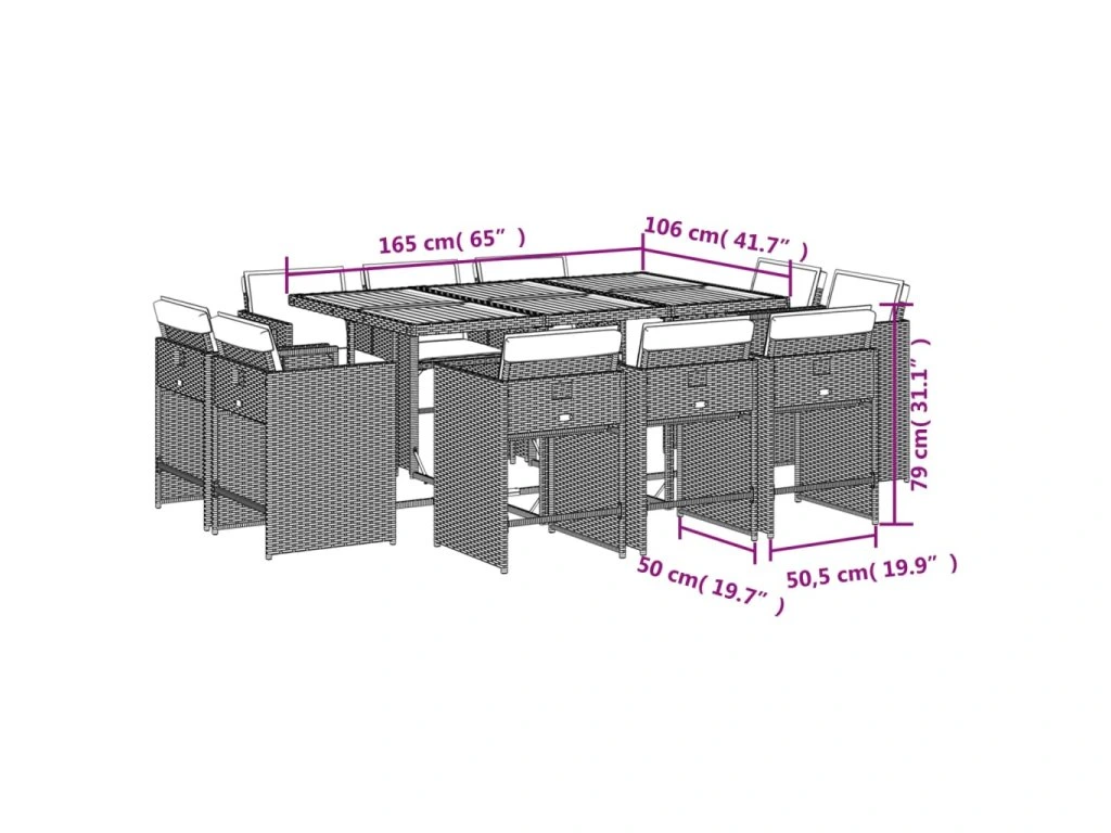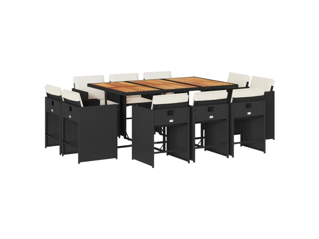 11dílný zahradní jídelní set s poduškami černý polyratan 3211215
