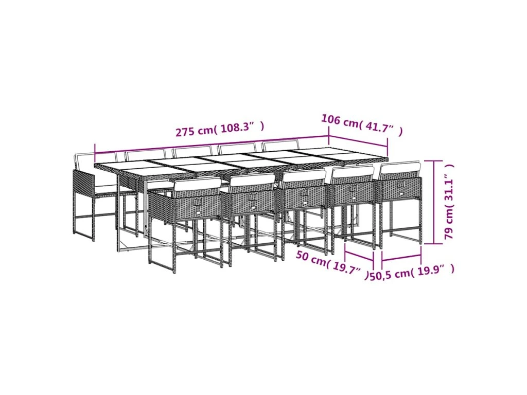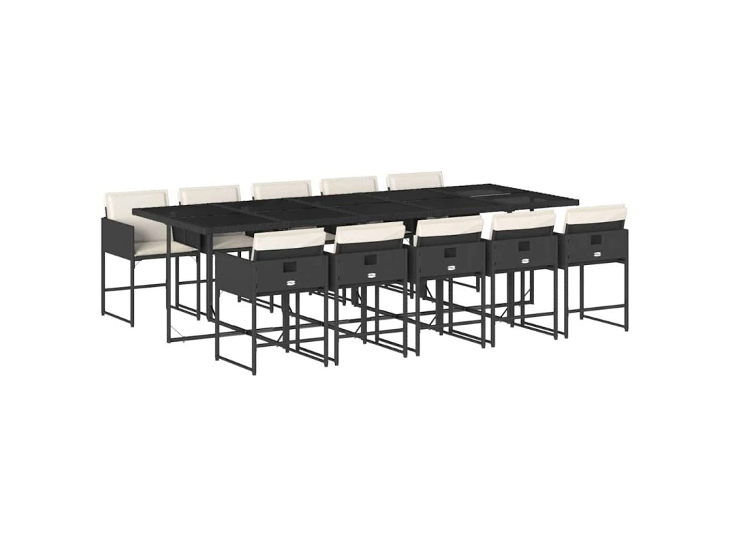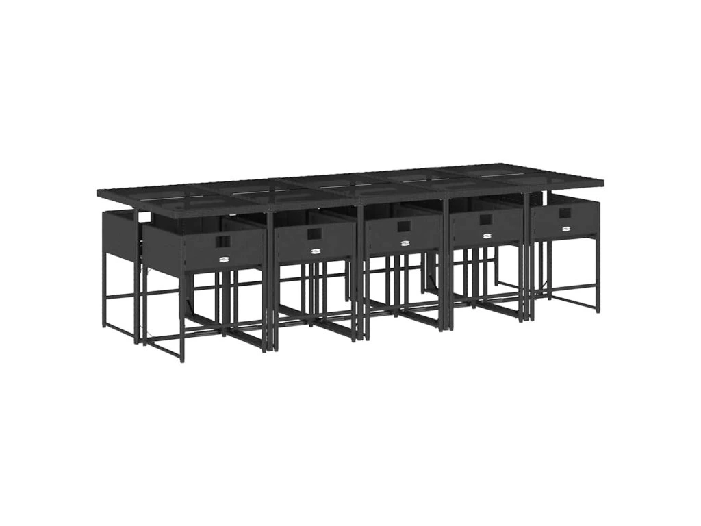 11dílný zahradní jídelní set s poduškami černý polyratan 3211290