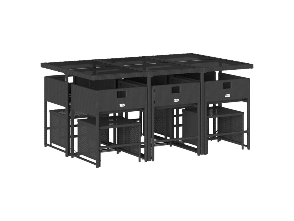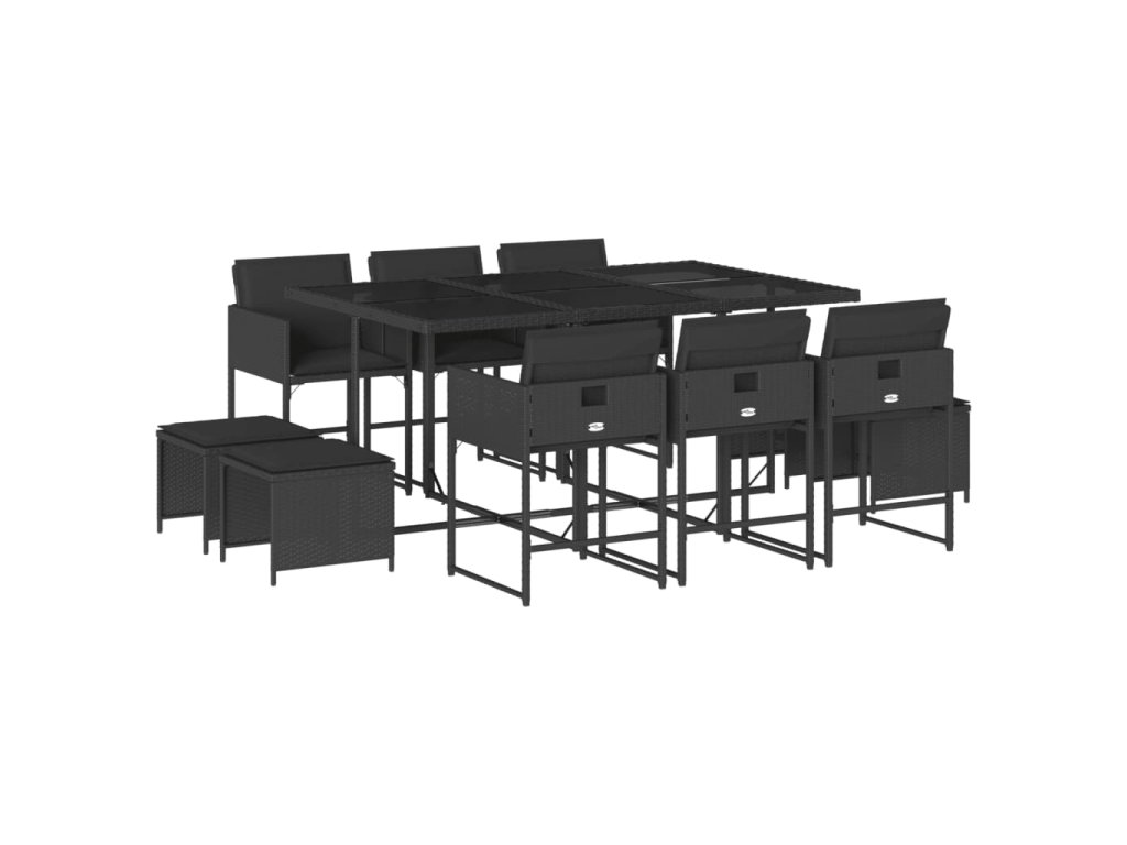 11dílný zahradní jídelní set s poduškami černý polyratan 3211327